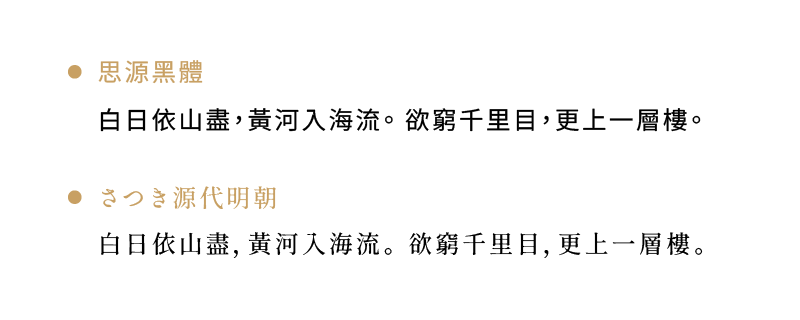 2. さつき源代明朝,特色:文雅細緻、日系感|文青感、紀念語。